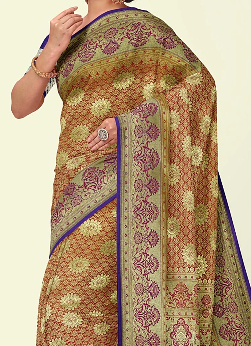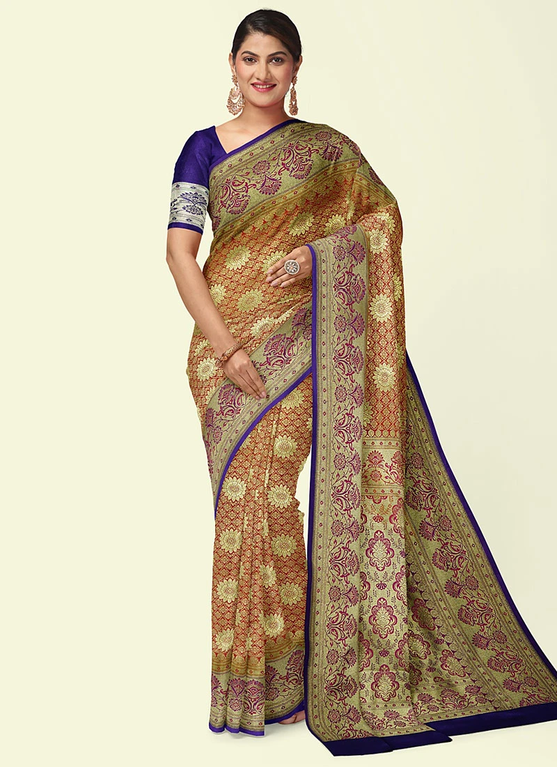 Banarasi Woven Work Multicolor Satin Silk Saree Festive Wear