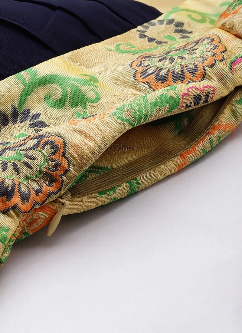 Beige Art Silk Jacquard Pleated Yoke Gown Wedding Wear