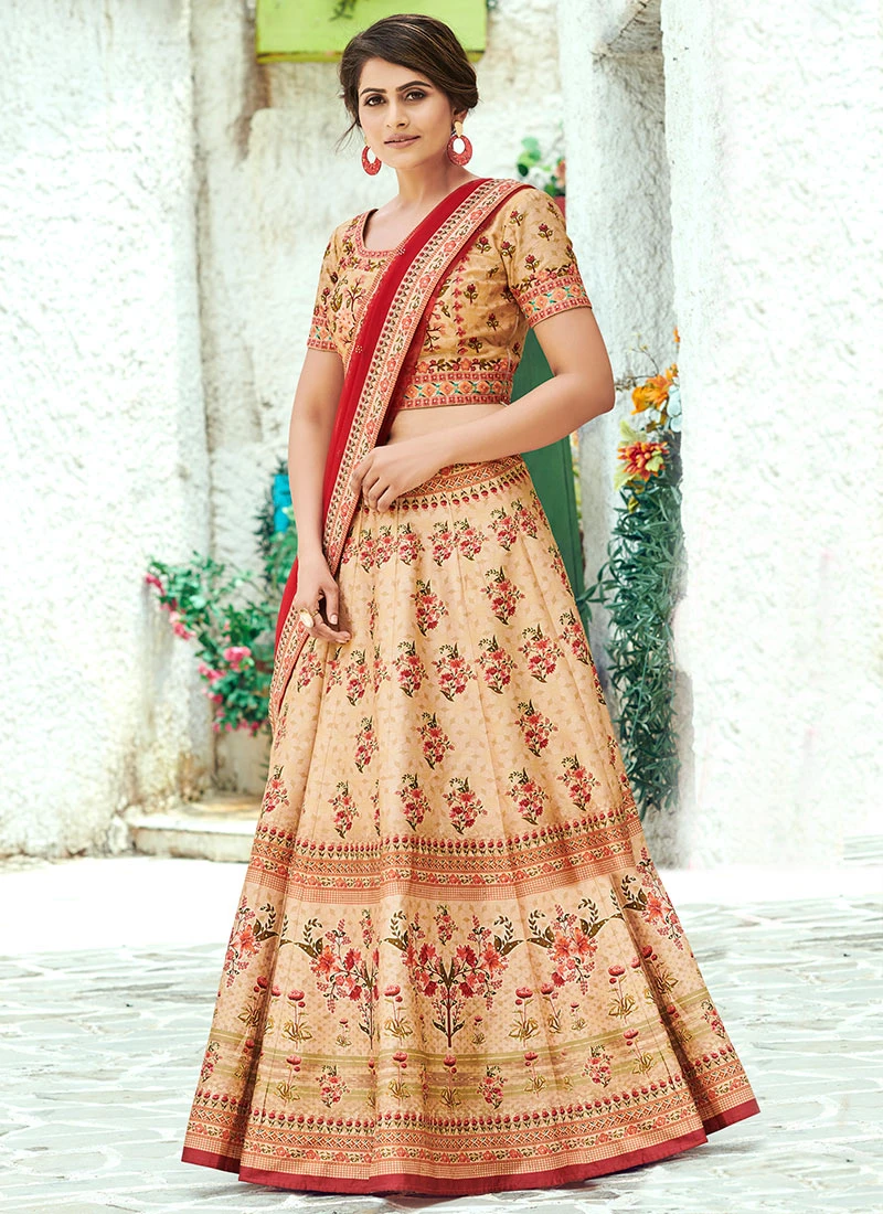 Beige Printed A Line Lehenga Party Wear