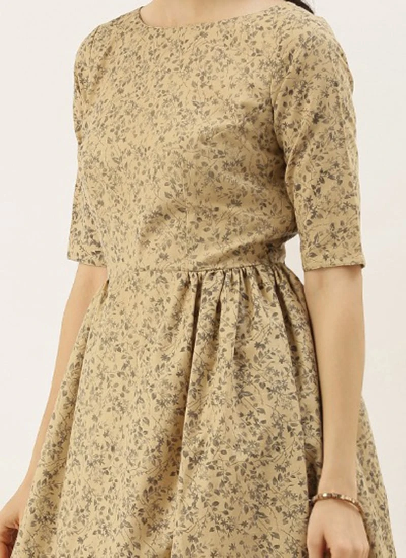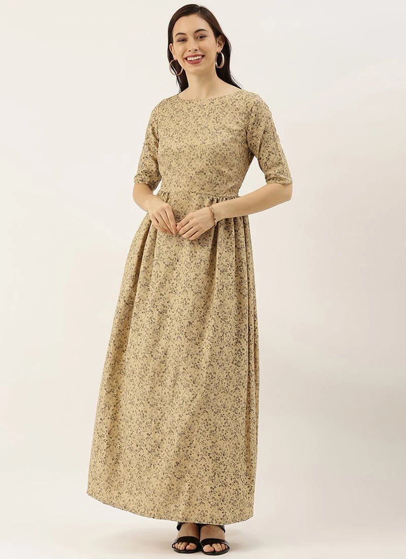 Beige Printed Rayon Boat Neck Maxi Dress After Six Wear