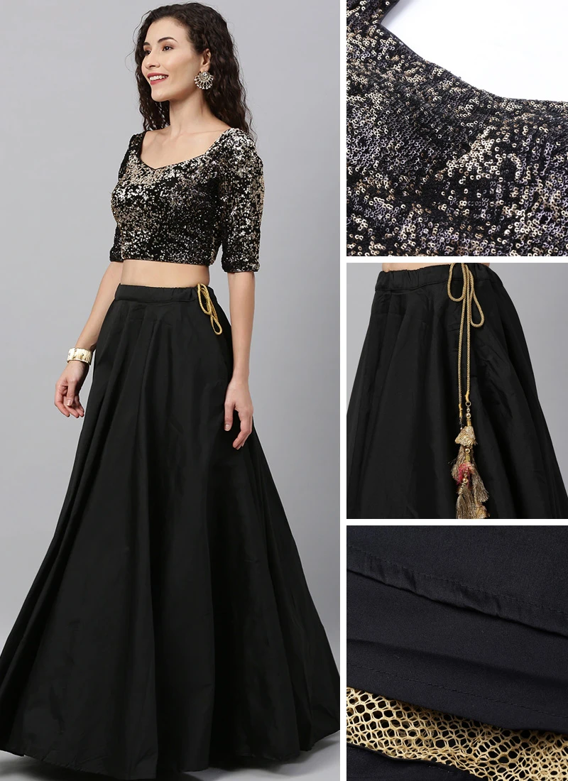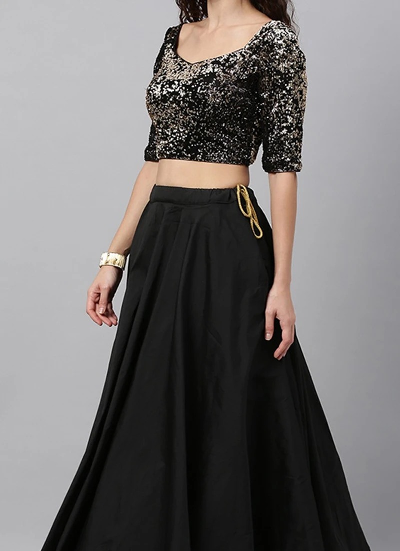 Black And Gold Sequins Lehenga Choli Set Festive Wear