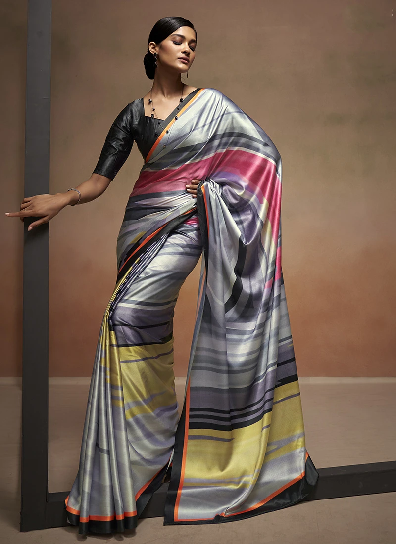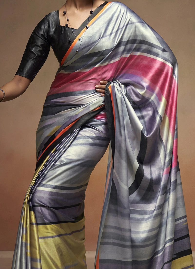 Black Faux Crepe Digital Print Saree After Six Wear
