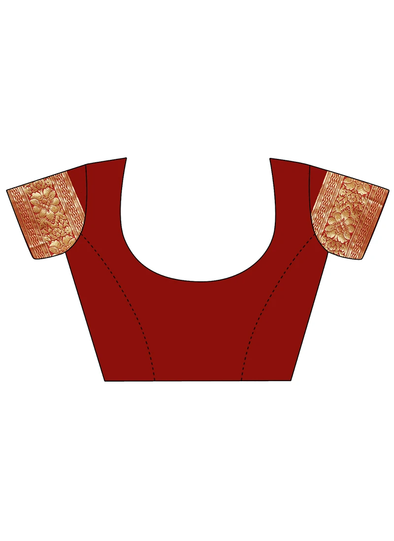 Comes with unstitched blouse fabric. To have the blouse stitched, please select the custom tailoring options. Blouses with elaborate patterns and colors are used for photo-shoot. Color and pattern of the blouse might not be as shown in the image.