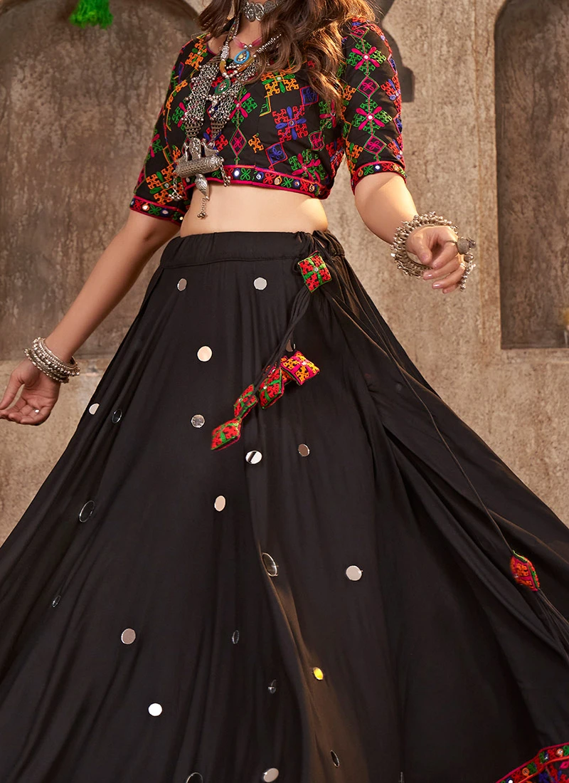 Black Viscose Rayon Kutch And Mirror Work Chaniya Choli Festive Wear