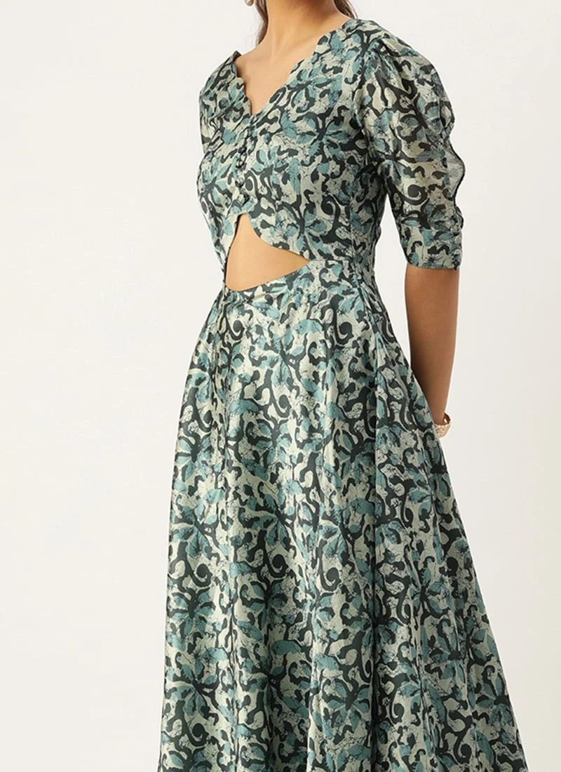 Blue Art Silk Digital Printed Dress After Six Wear Festive Wear