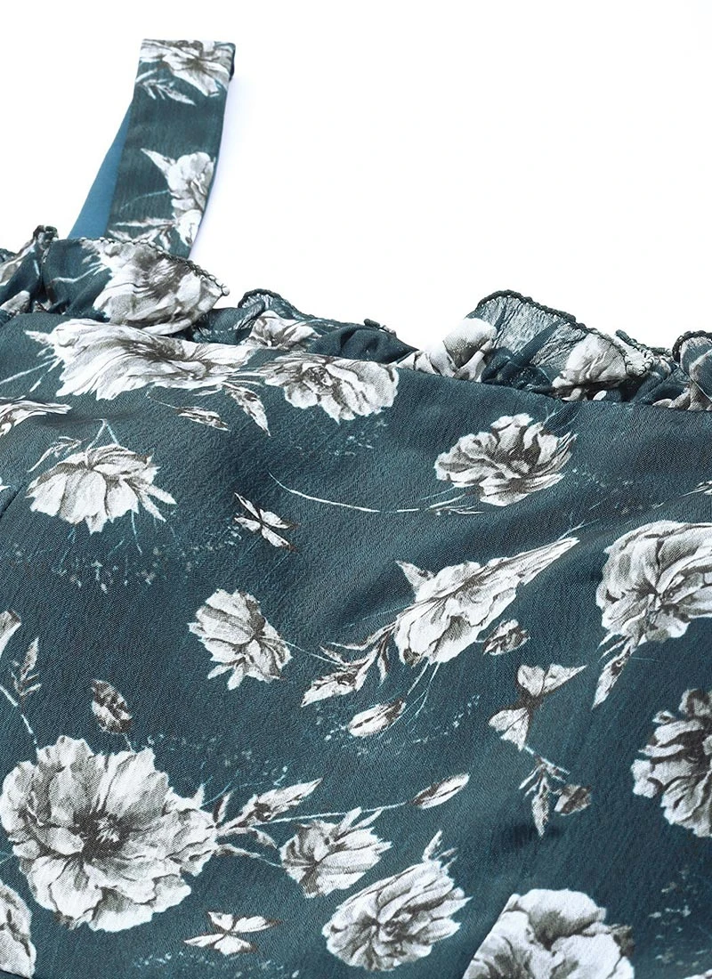 Blue Digital Printed Chinon Dress Party Wear