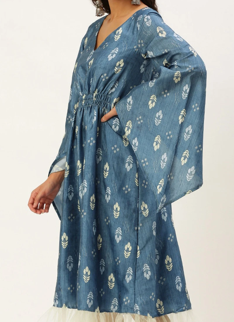Blue Digital Printed Kaftan Dress After Six Wear Festive Wear