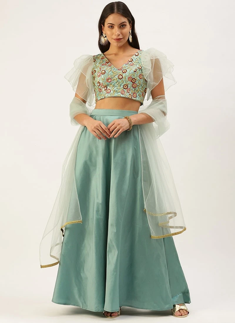 Blue Embroidered Ruffles Style Lehenga Set Festive Wear