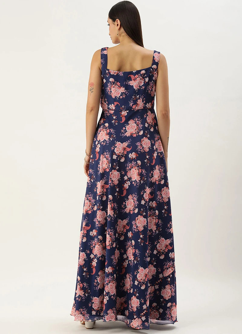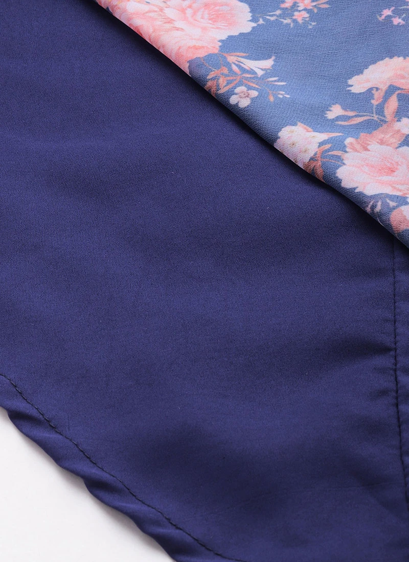 Blue Georgette Digital Printed Dress Party Wear