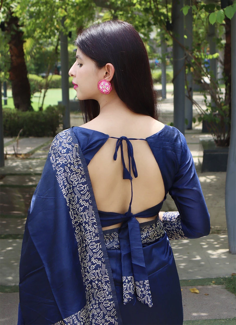 Blue Handloom Raw Silk Saree With Weaving Border Festive Wear