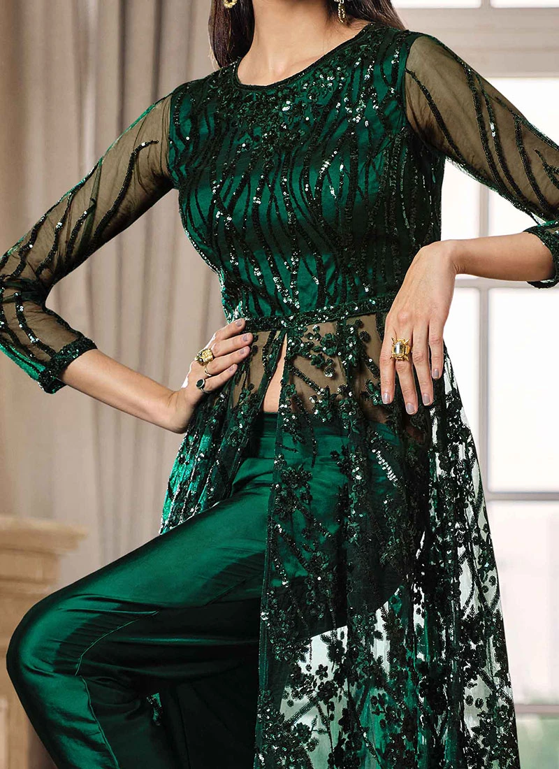Bottle Green Net Sequins Embroidered Anarkali Suit Party Wear