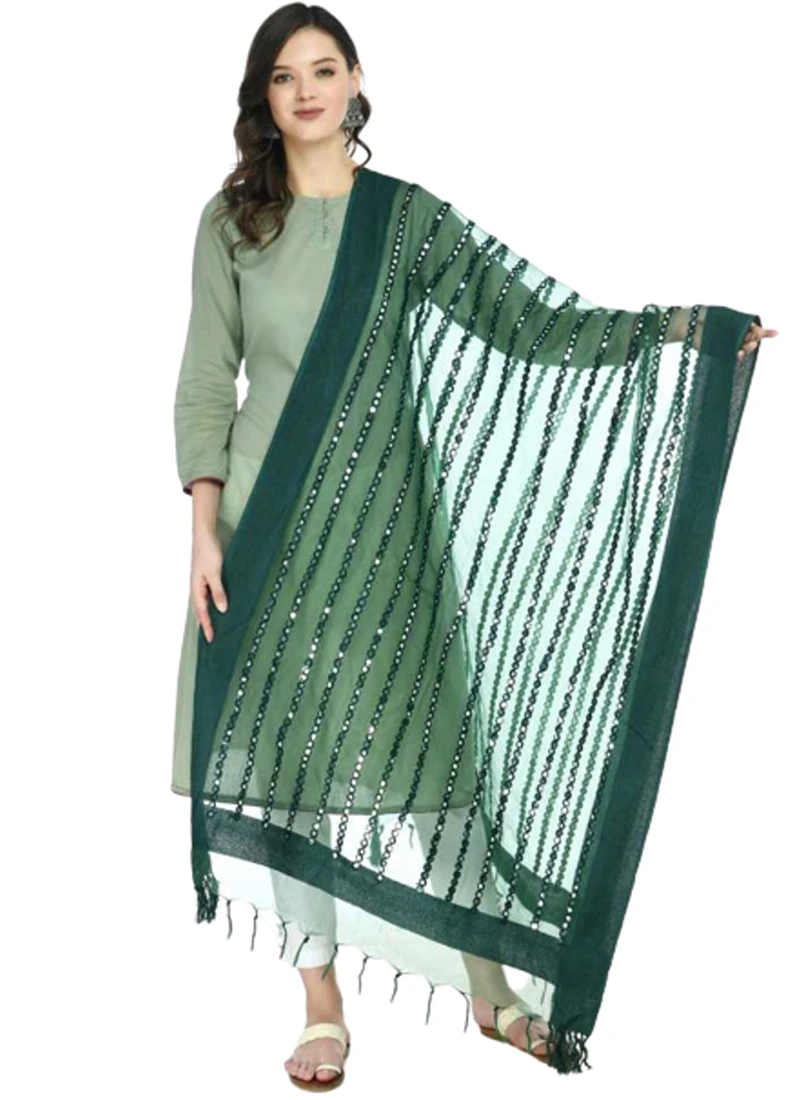 Look stylish in this bottle green color organza cotton dupatta with gota patti work looks chic and pretty.