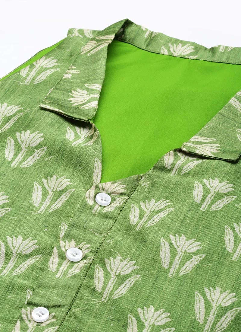Bottom From Green Art Silk Digital Printed Top N Pant Suit After Six Wear