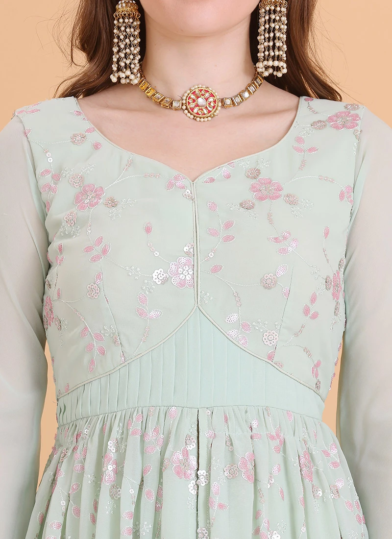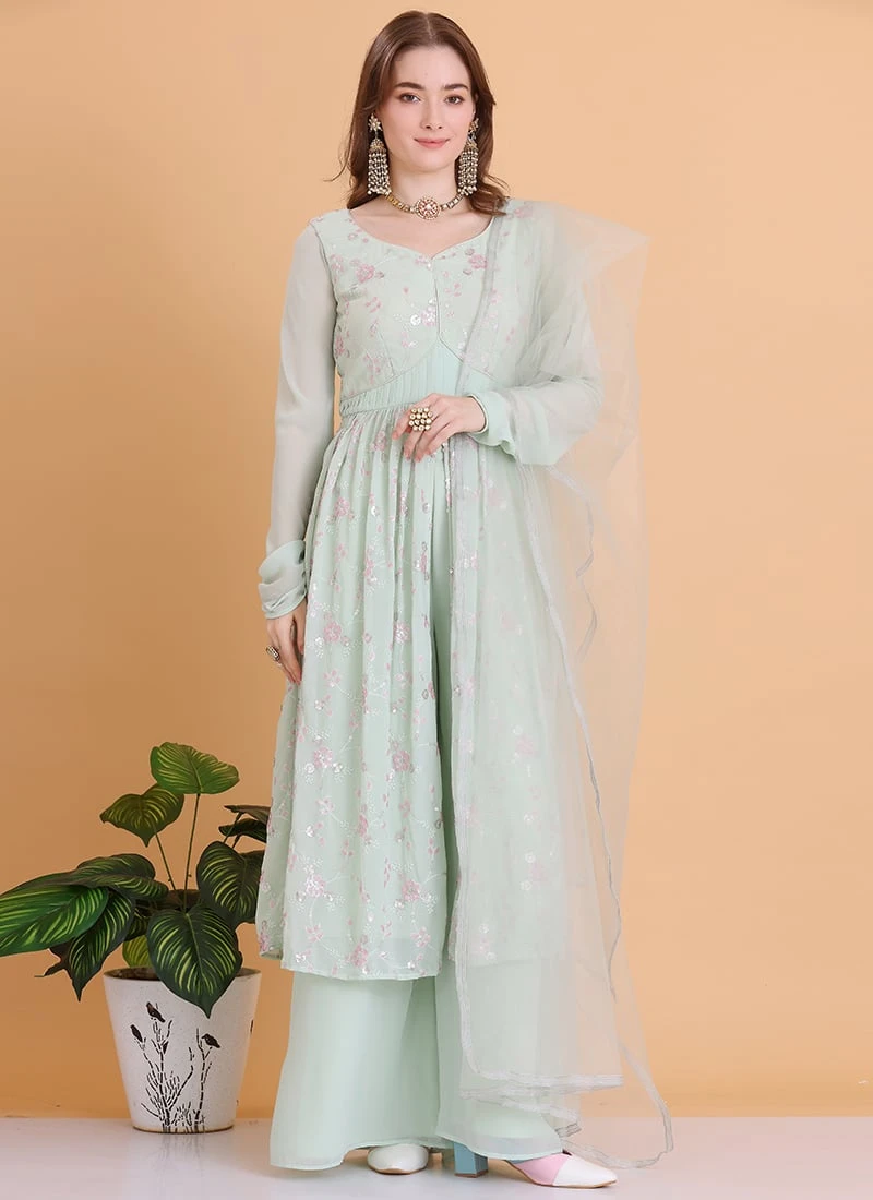 Bottom From Green Georgette Embroidered Palazzo Suit After Six Wear