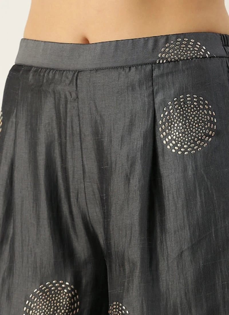 Bottom From Grey Art Silk Foil Print Gharara Set After Six Wear
