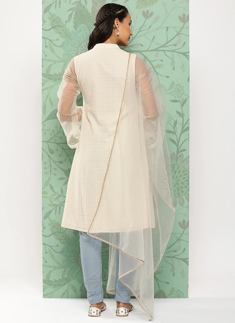Bottom From Grey N White Sequin Embroidered Straight Pant Suit After Six Wear