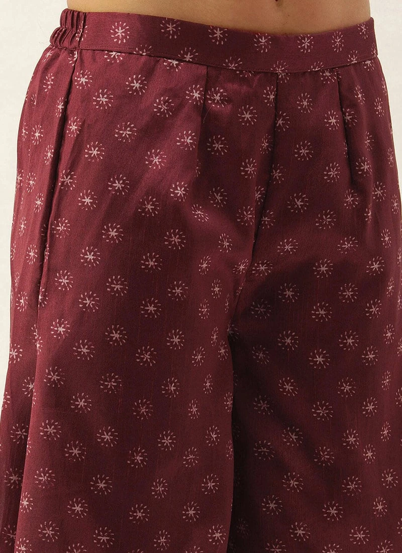 Bottom From Maroon Art Silk Printed Co Ords Set After Six Wear
