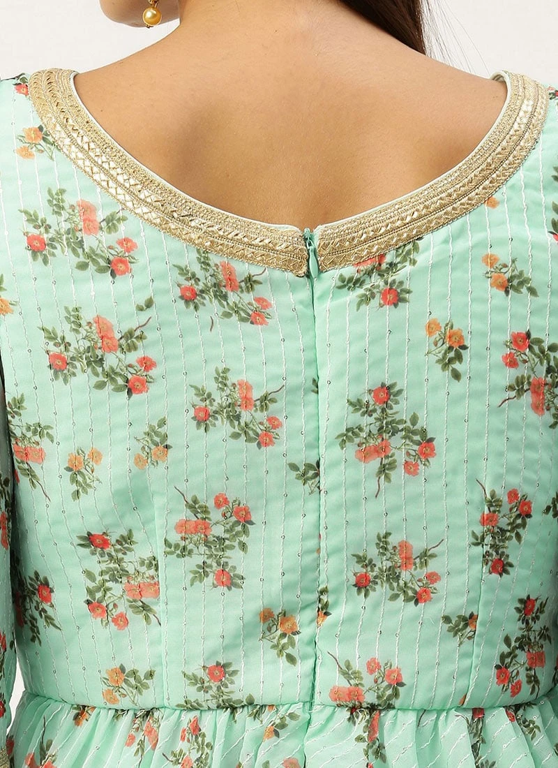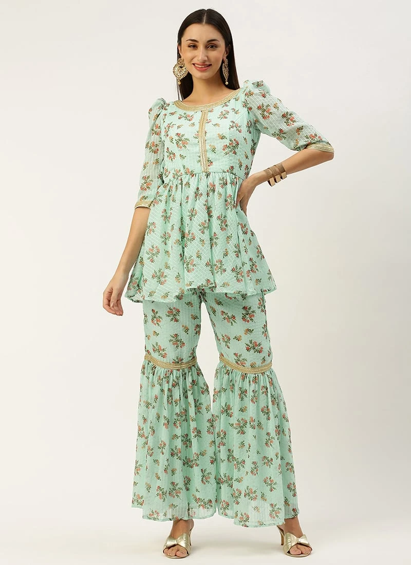 Bottom From Mint Green Digital Printed Embroidered Co Ords Set After Six Wear