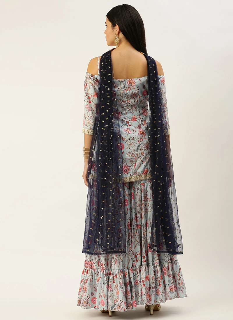 Bottom From Pale Blue Lily Art Silk Printed Gharara Set After Six Wear