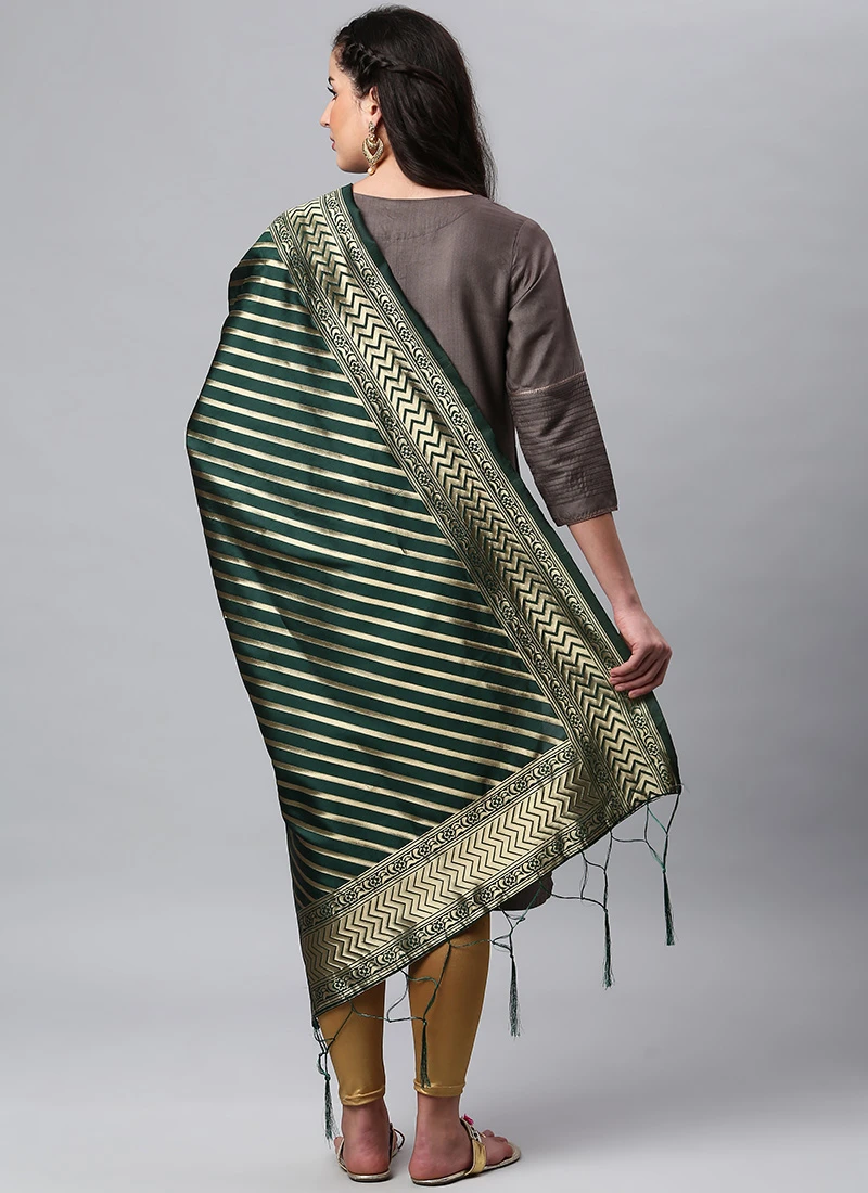 Dark Green Benarasi Silk Jacquard Woven Dupatta Festive Wear