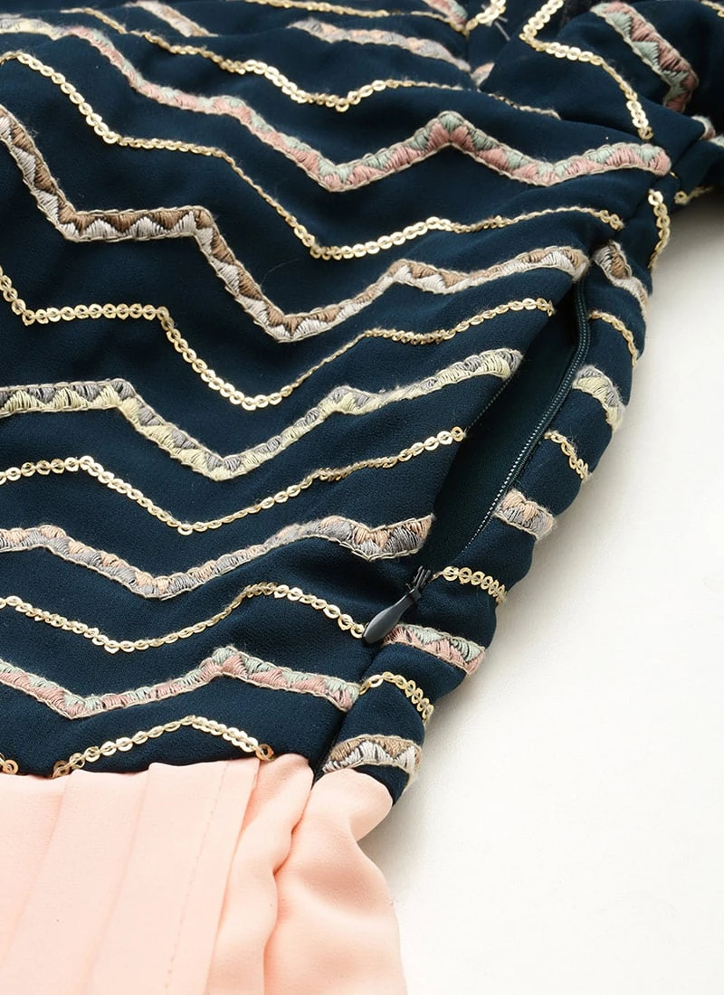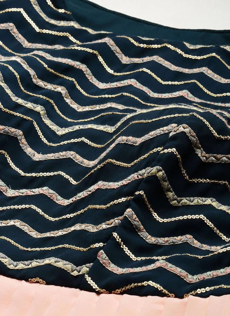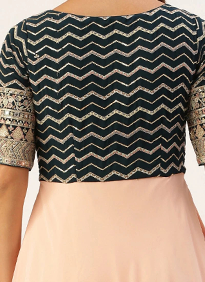 Dark Green Georgette Embroidered N Peach Gown Festive Wear