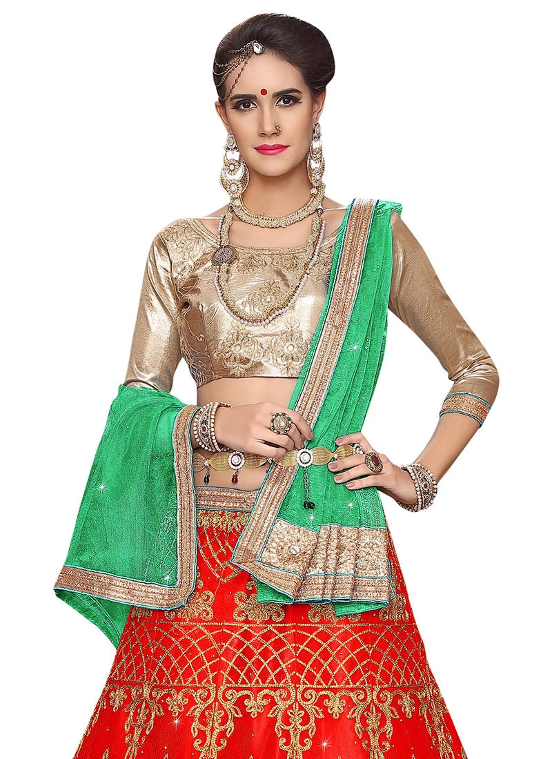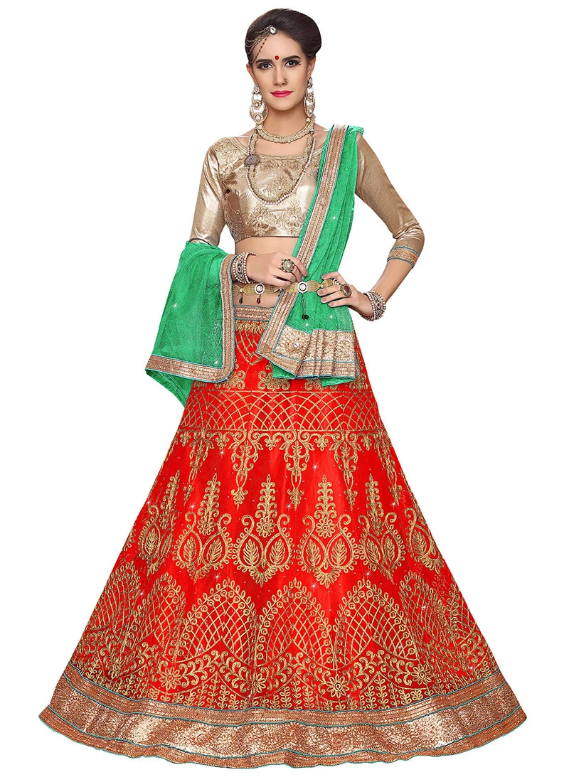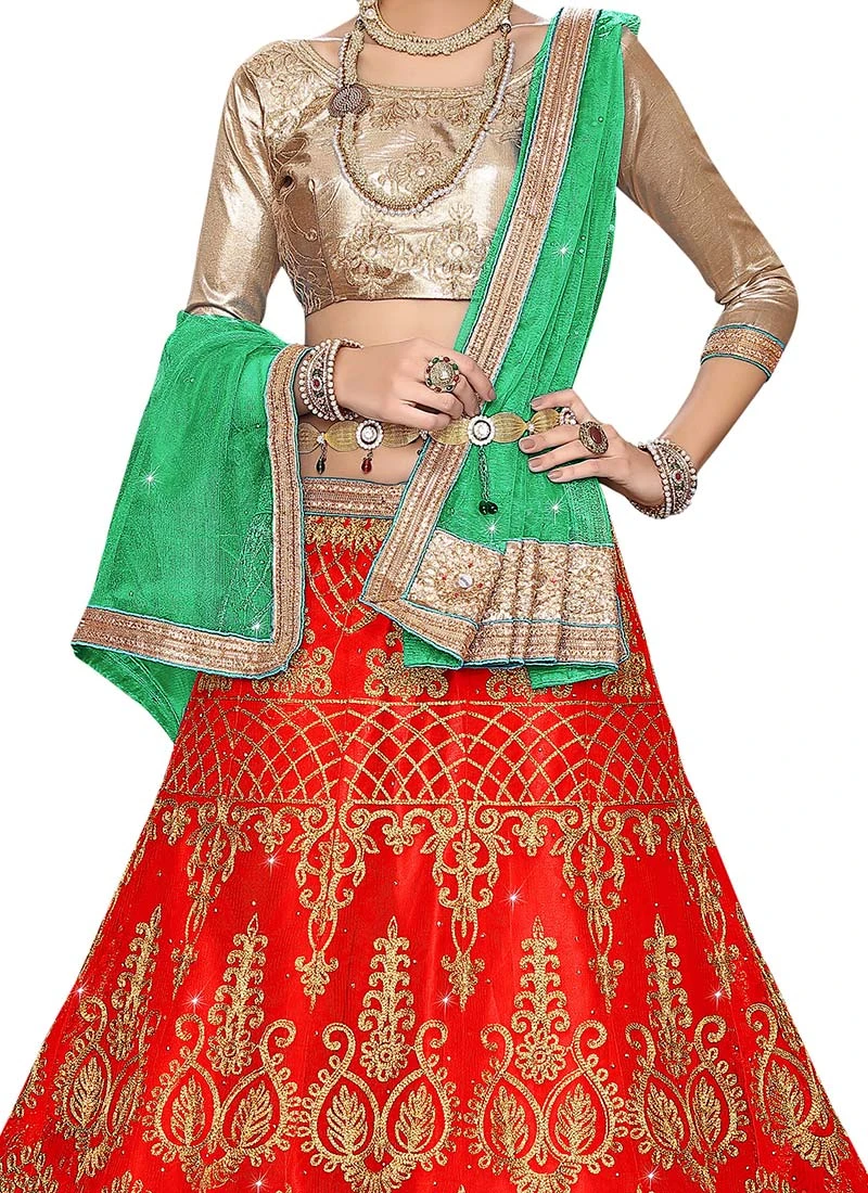 Dark Orange Art Silk Embroidered A Line Lehenga Party Wear