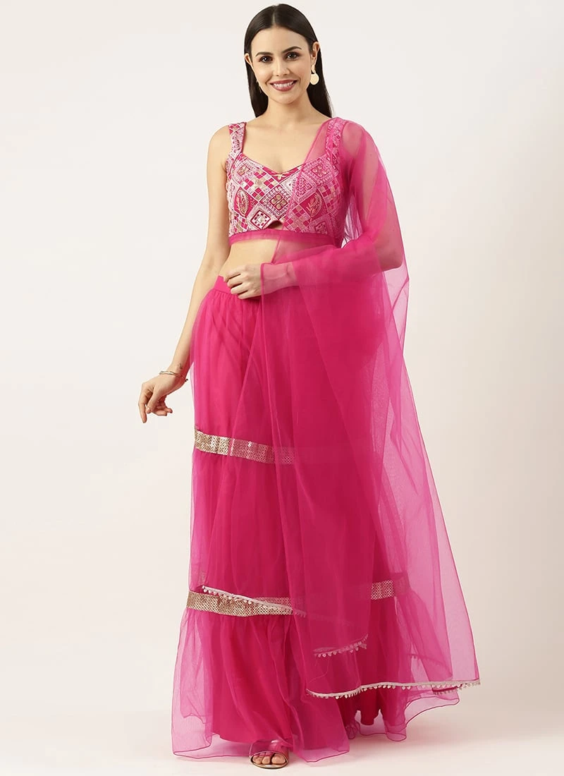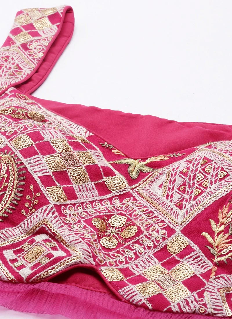 Dark Pink Georgette Embroidered Lehenga Festive Wear