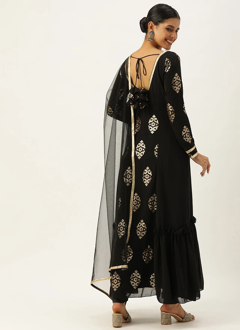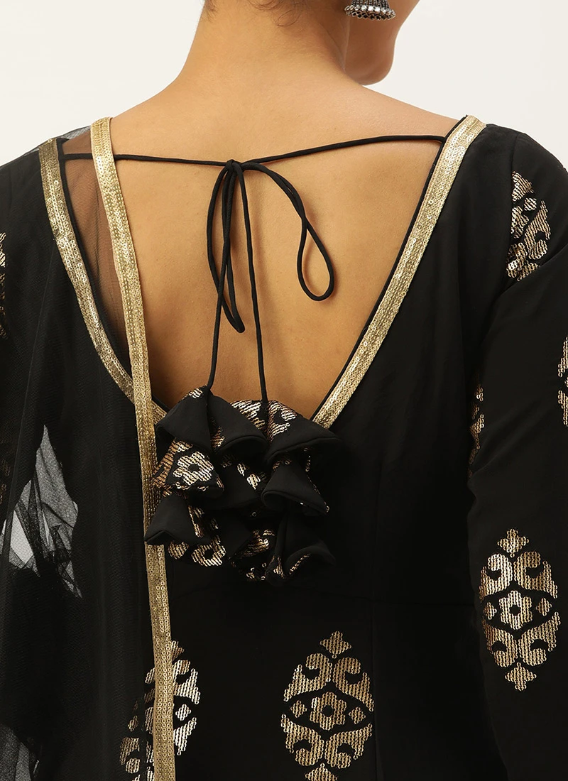 Dupatta From Black Embroidered Anarkali Suit Set After Six Wear