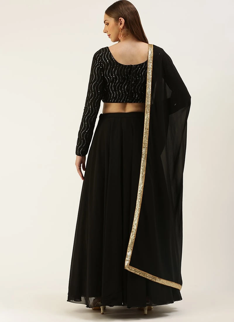 Dupatta From Black Embroidered Sequins Lehenga After Six Wear