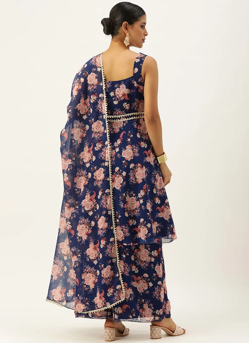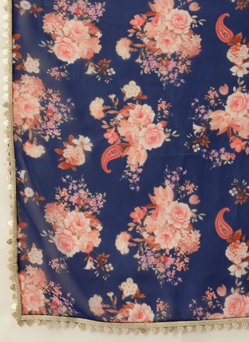 Dupatta From Blue Georgette Printed Palazzo Suit After Six Wear