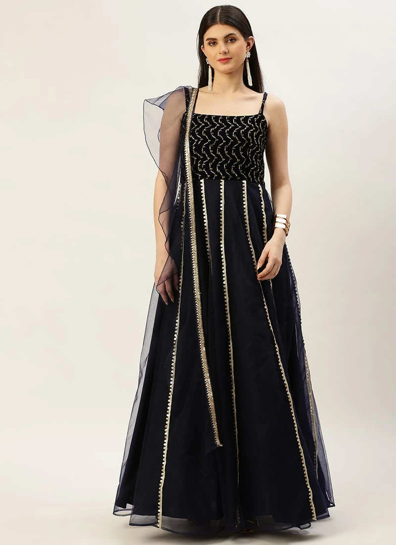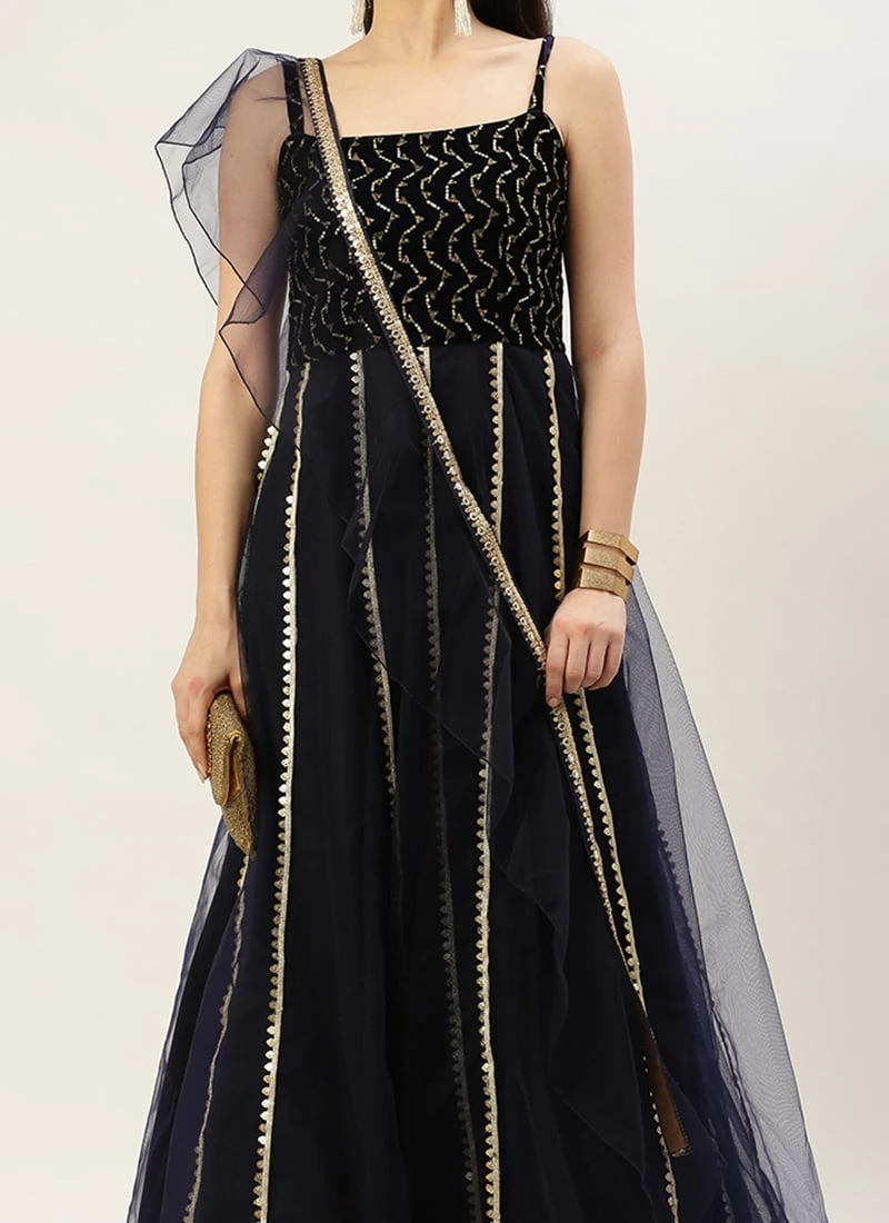Dupatta From Blue Velvet Embroidered Gown With Dupatta After Six Wear