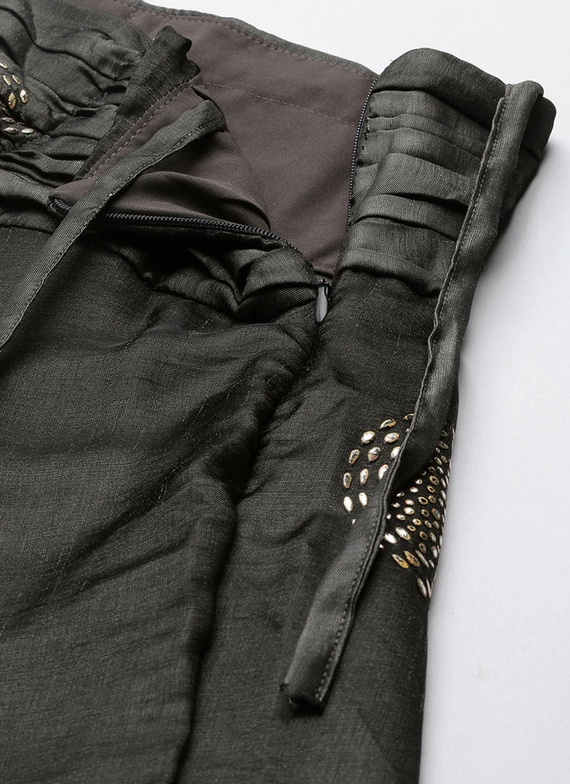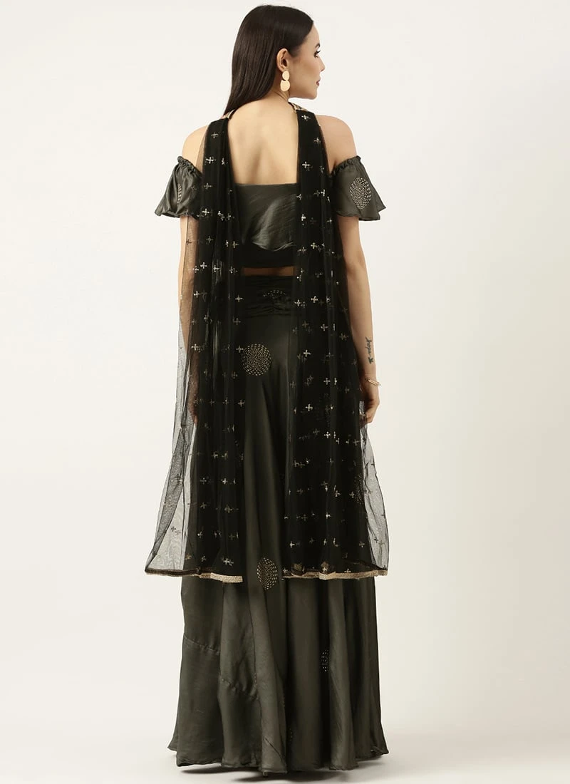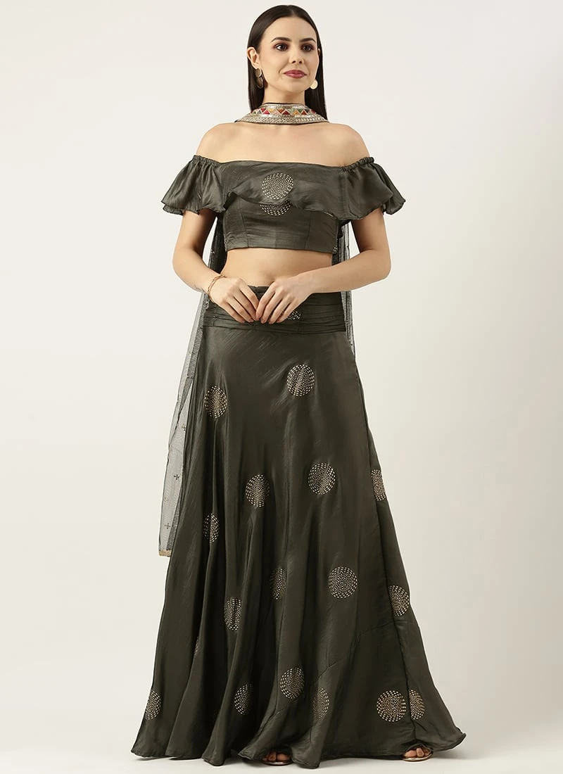 Dupatta From Grey Art Silk Foil Print Lehenga Set After Six Wear