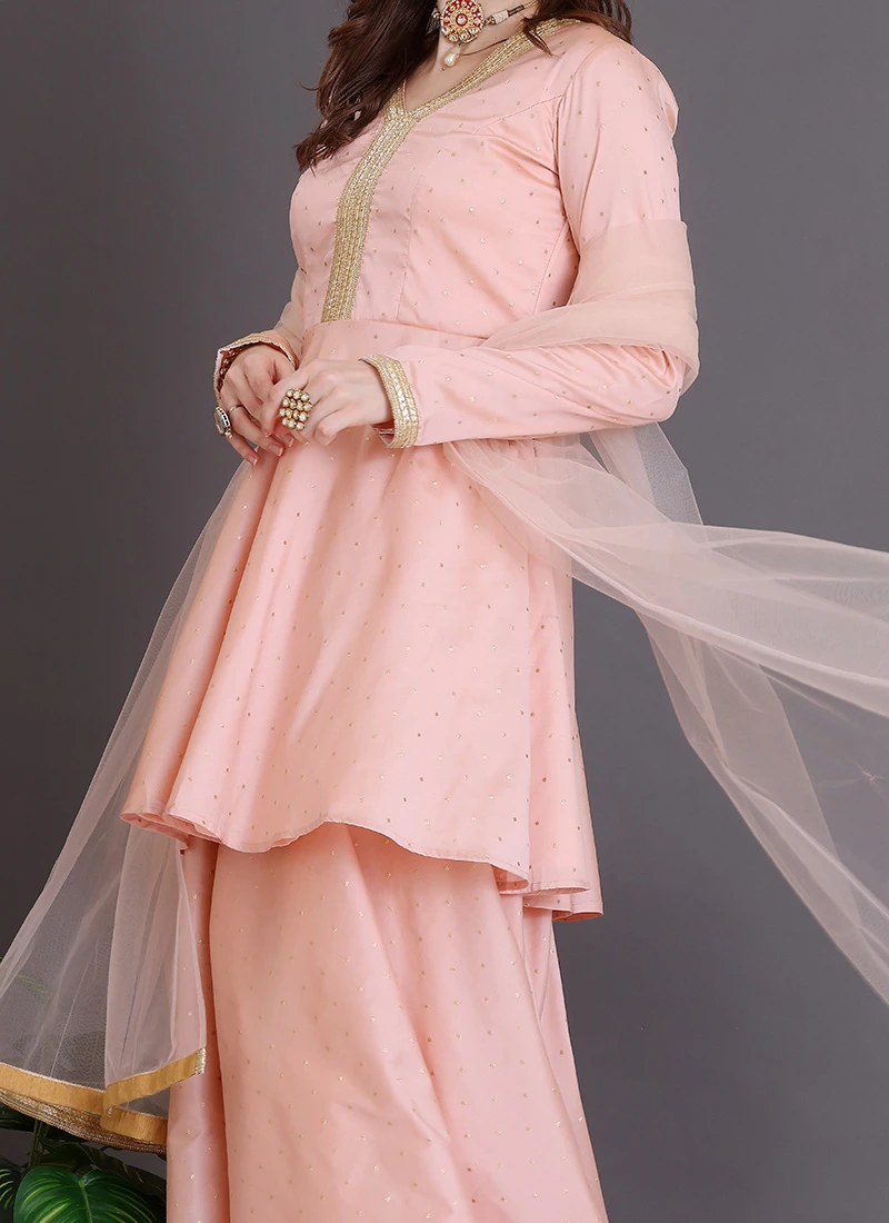 Dupatta From Peach Art Silk Sharara Set After Six Wear