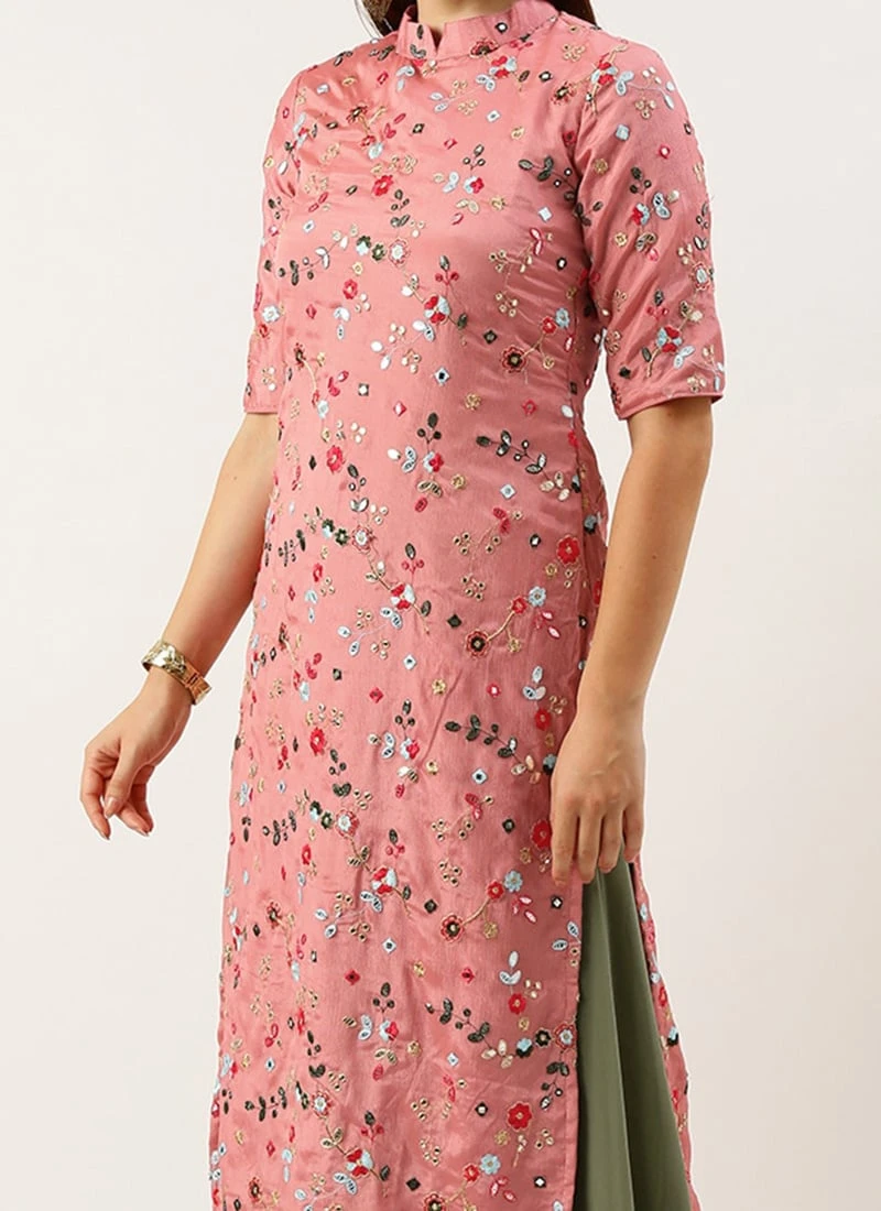 Dupatta From Rouge Pink Embroidered Collar Neck Palazzo Suit After Six Wear
