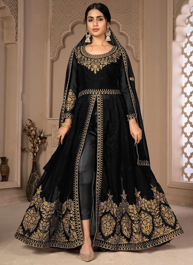 Full Sleeve Black Embroidery Georgette Anarkali Suit Party Wear