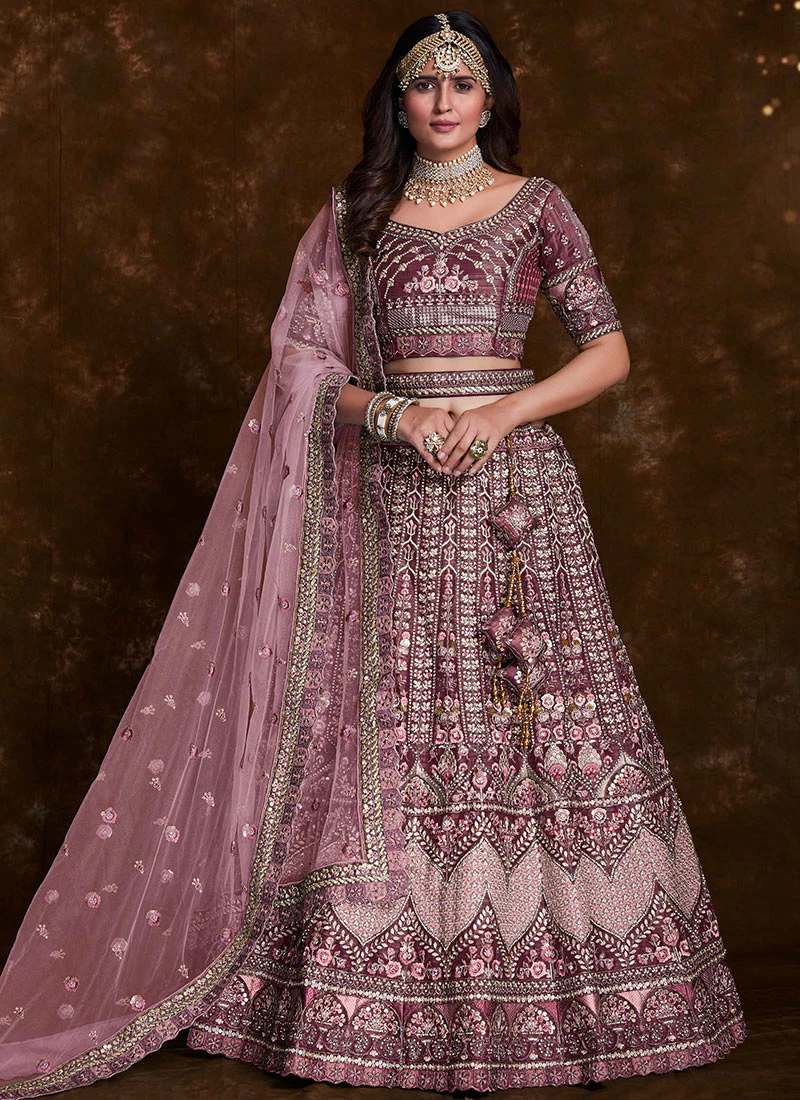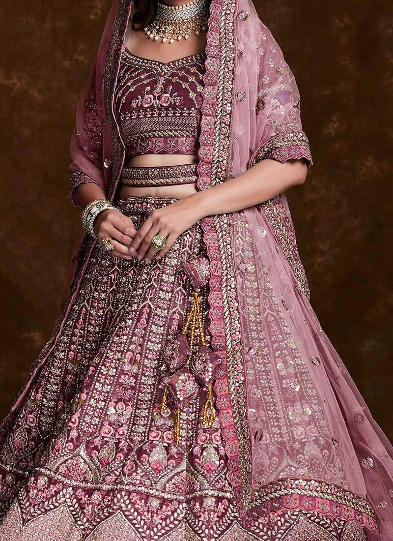 Complementing the lehenga is a matching blouse adorned with the same intricate embroidery and stone detailing ensuring a cohesive and harmonious look. The blouse is designed with a modern sensibility featuring a flattering neckline and a welltailored fit that accentuates your figure.To complete the ensemble a sheer and lightweight dupatta is included. It boasts a delicate border with matching embroidery and stones adding an extra layer of elegance to the outfit. The dupatta can be draped in various styles to suit your personal preference.This lehenga set is versatile and can be worn for a variety of occasions. Whether youre the bride looking for a stunning bridal ensemble a bridesmaid adding a touch of glamour to the wedding or a guest attending a lavish celebration this outfit is sure to make you stand out and leave a lasting impression.