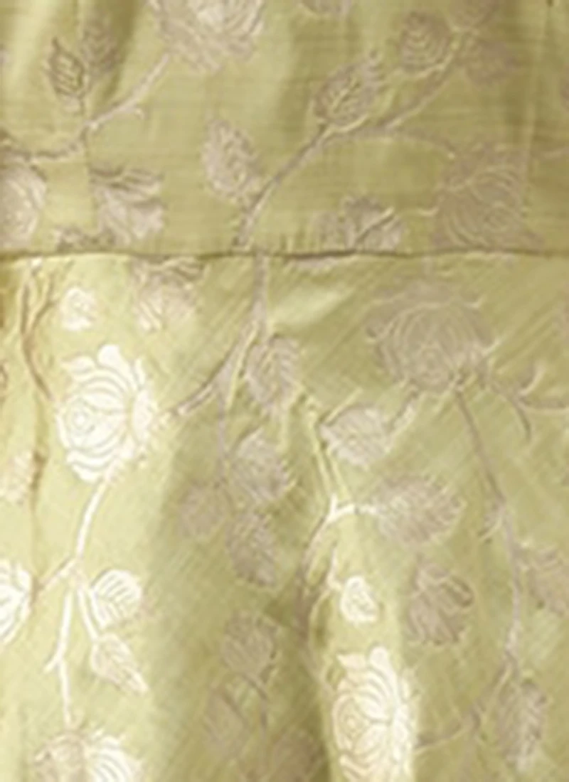 Green Brocade Boat Neck Flared Dress Wedding Wear