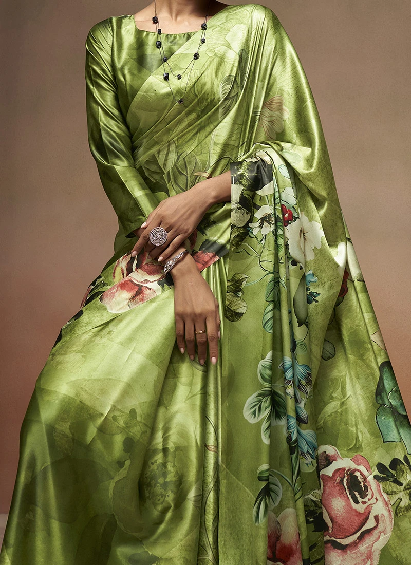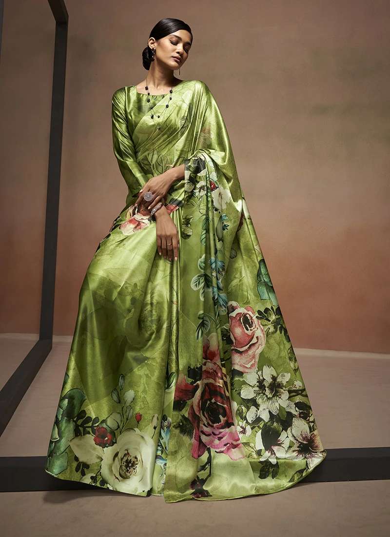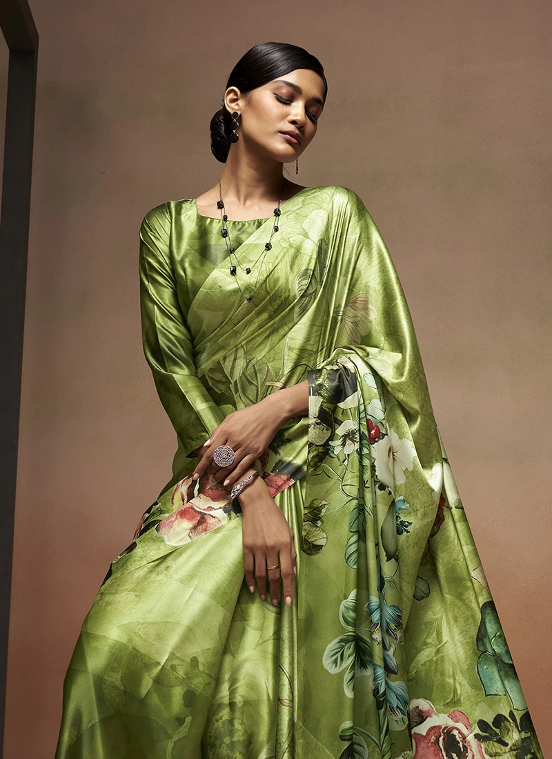 Green Faux Crepe Digital Print Saree After Six Wear