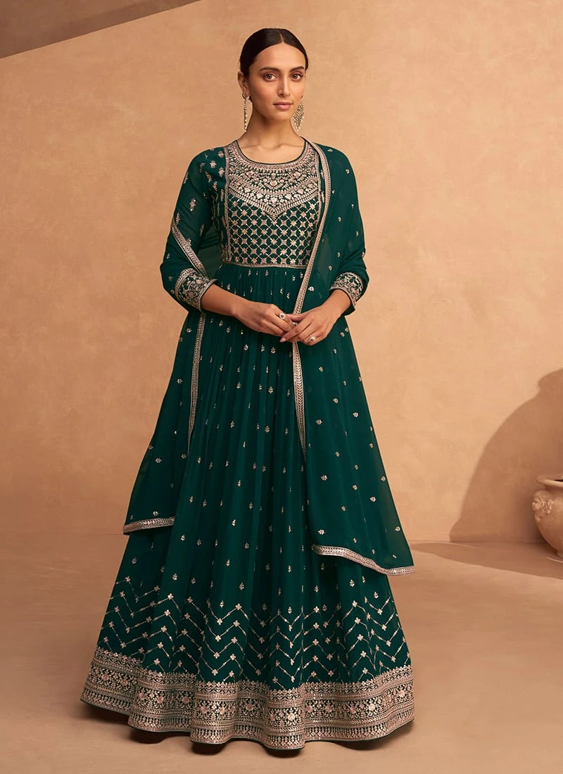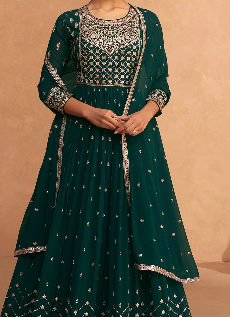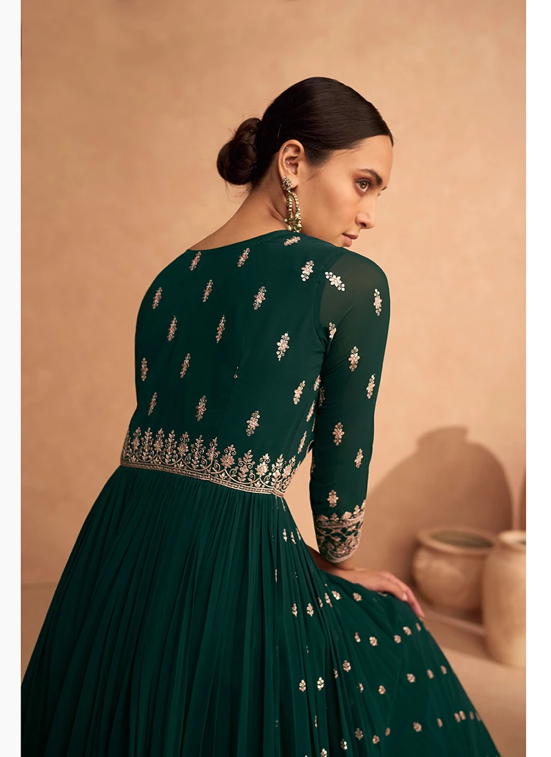Green Georgette Embroidered Anarkali Suit Festive Wear