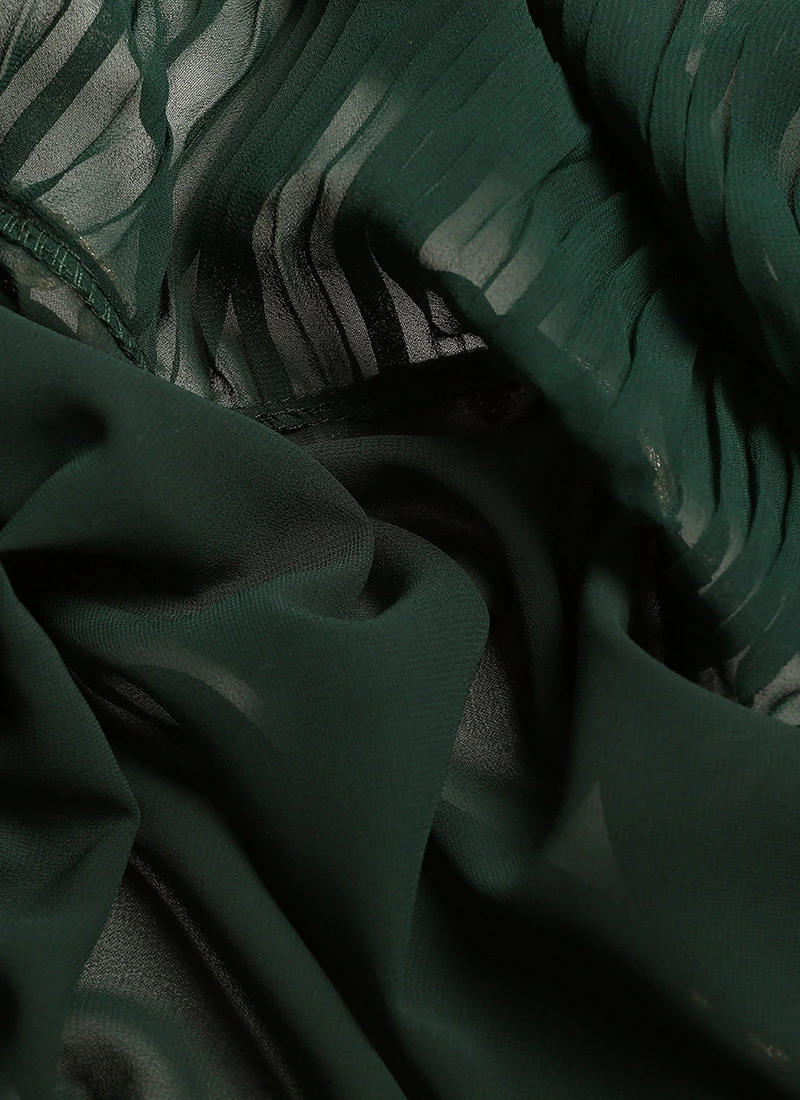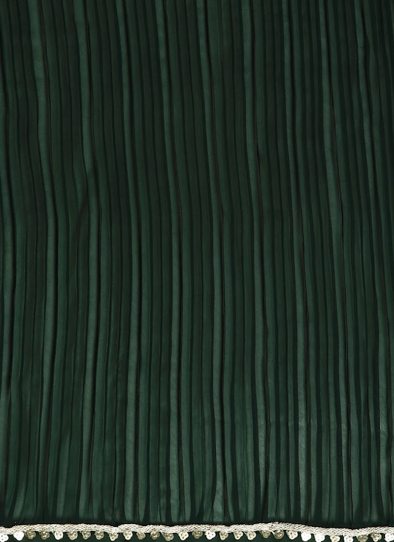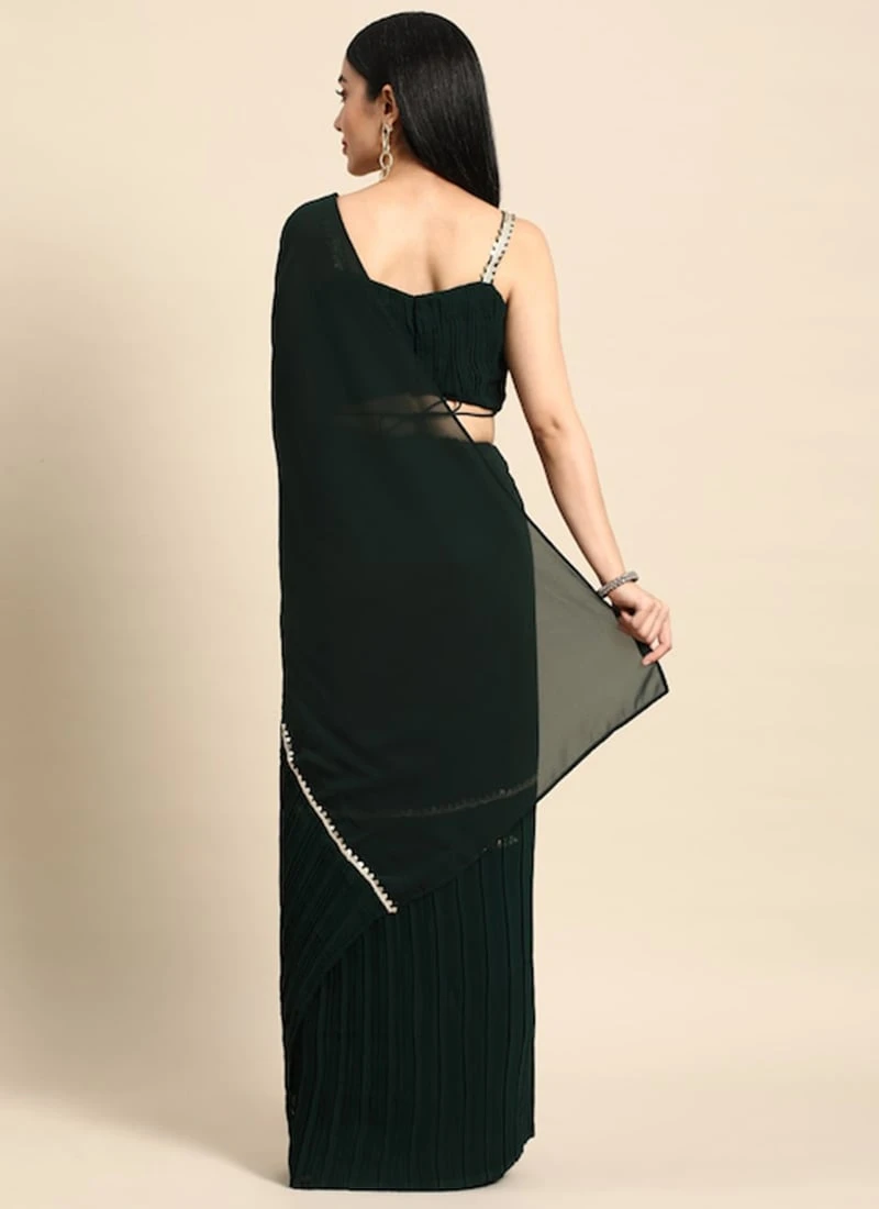 Green Georgette Pleated Ruffle Saree Festive Wear