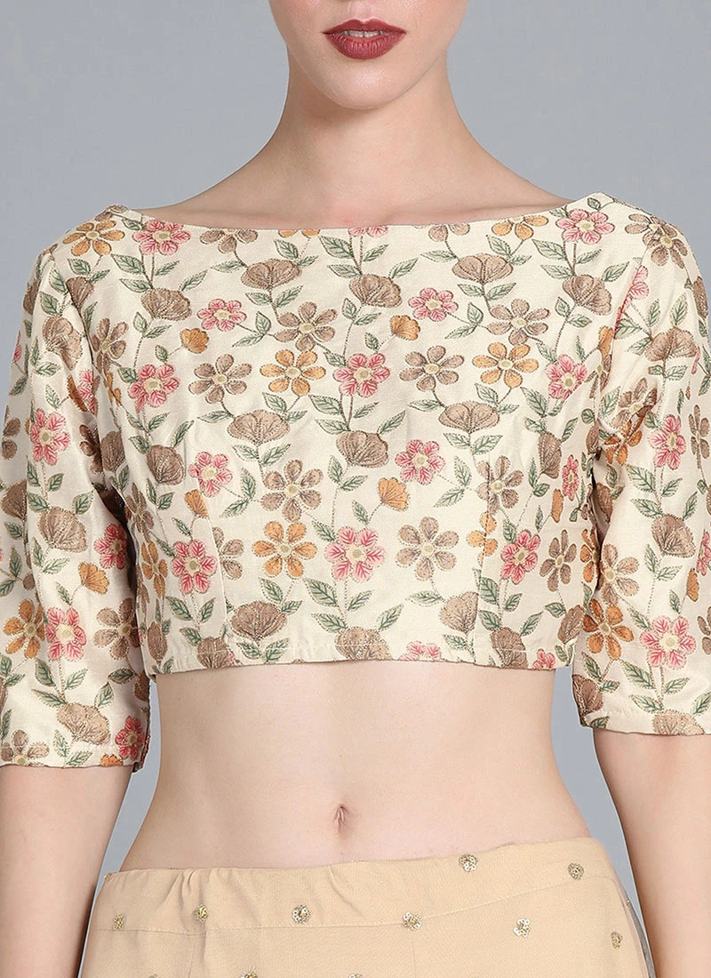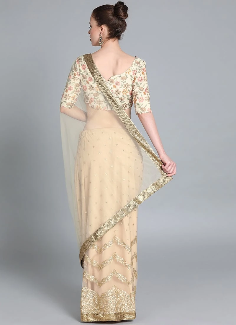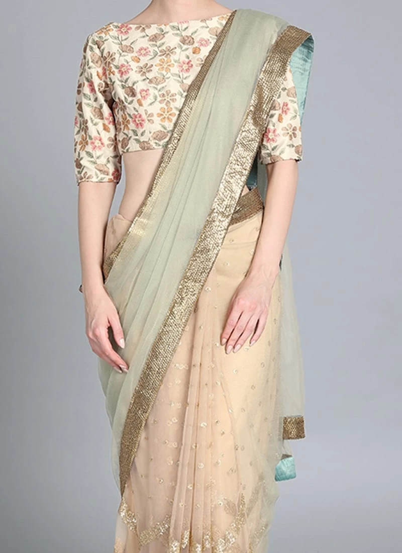 Green N Cream Embroiderd Half N Half Saree Wedding Wear