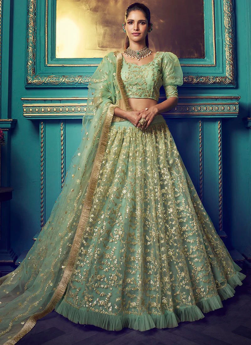 Note: LATKANS AND ACCESORIES ARE USED ONLY FOR PHOTOSHOOT ONLY. The lehenga length is 41 inches, Choli length is 15 inches.