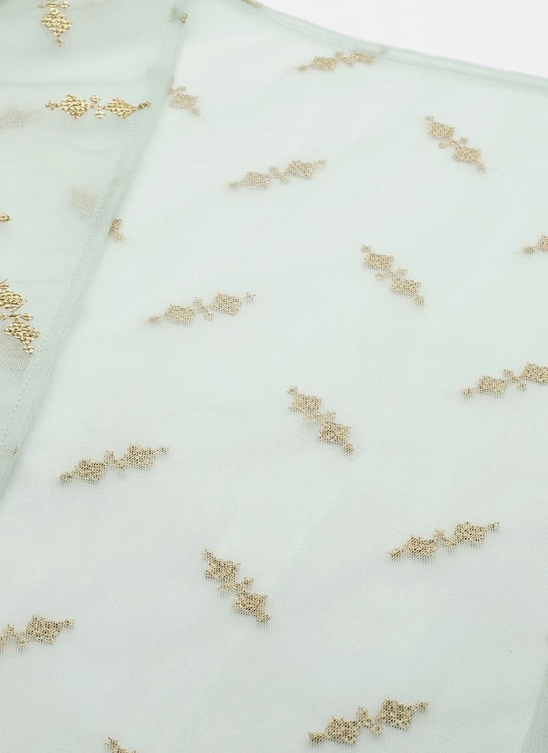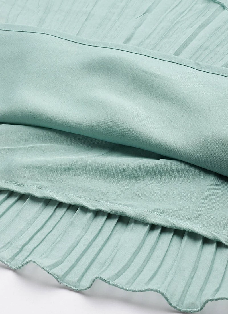 Green Pleated Georgette Gown N Embroidered Jacket Party Wear