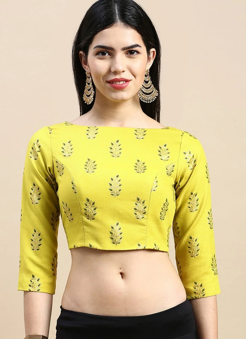 Green Printed Cotton Blouse Festive Wear