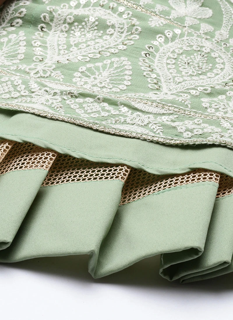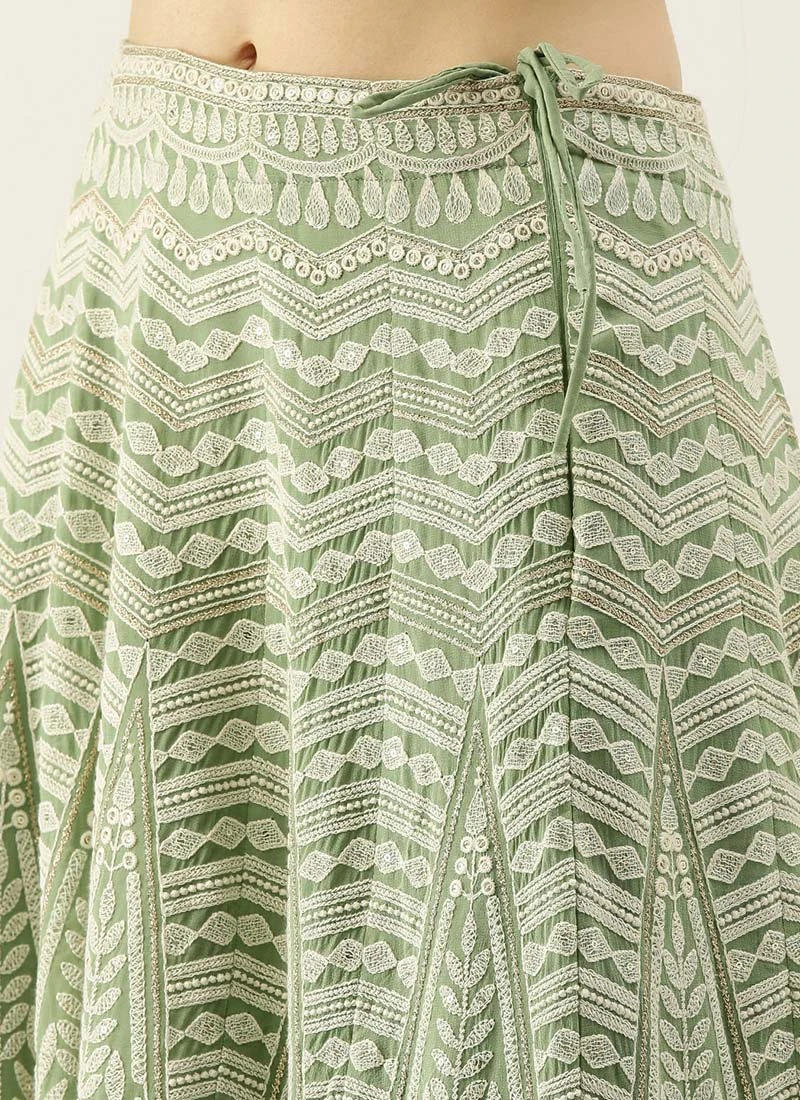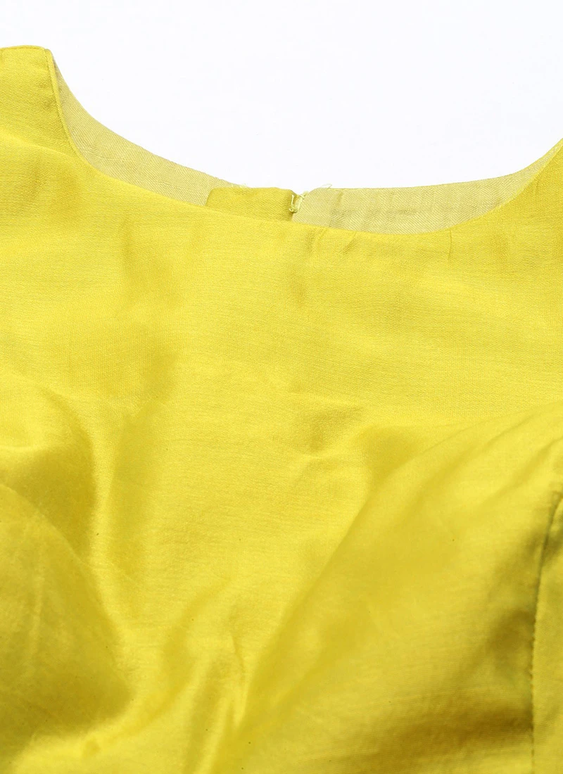 Green Viscose N Yellow Blended Cotton Kali Lehenga Festive Wear