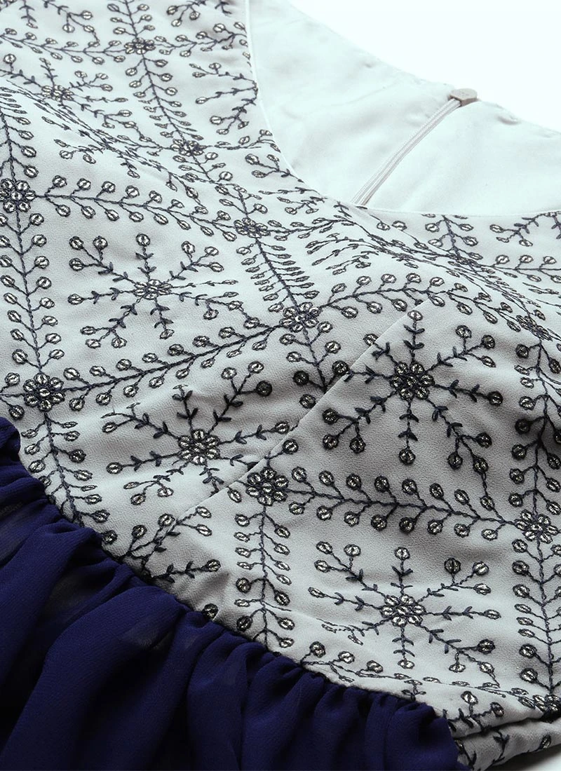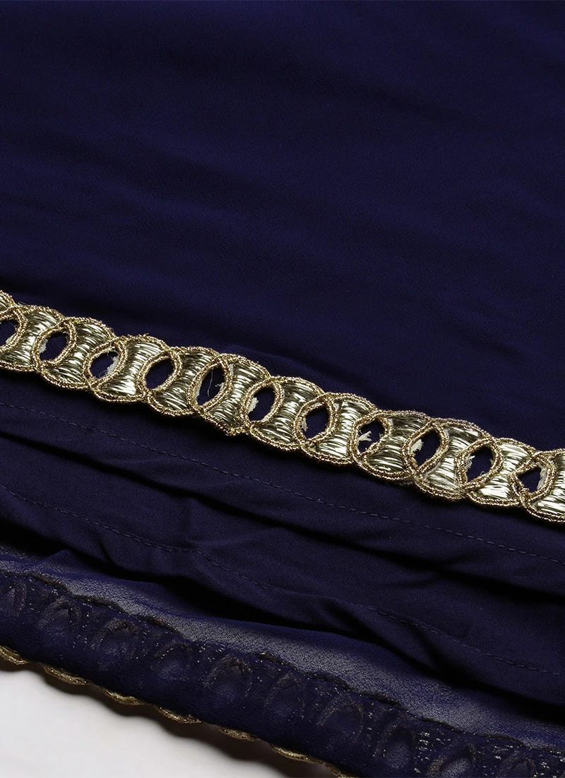 Grey N Blue Long Choli Lehenga Set Festive Wear