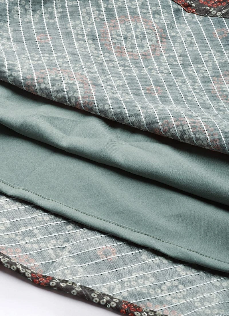 Grey N Green Printed Sweetheart Neck Anarkali Suit Festive Wear
