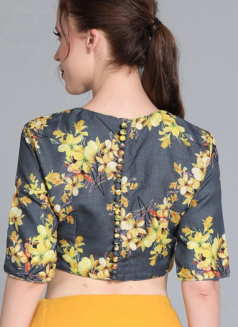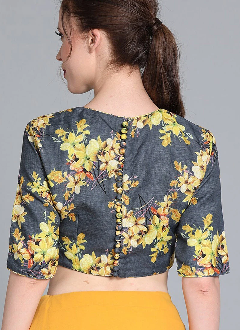 Grey N Yellow Cotton Digital Printed Blouse Festive Wear