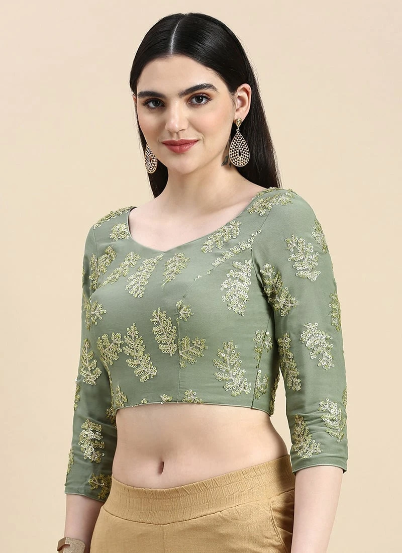 Grey Sequins Embroidered Chinon Blouse Festive Wear