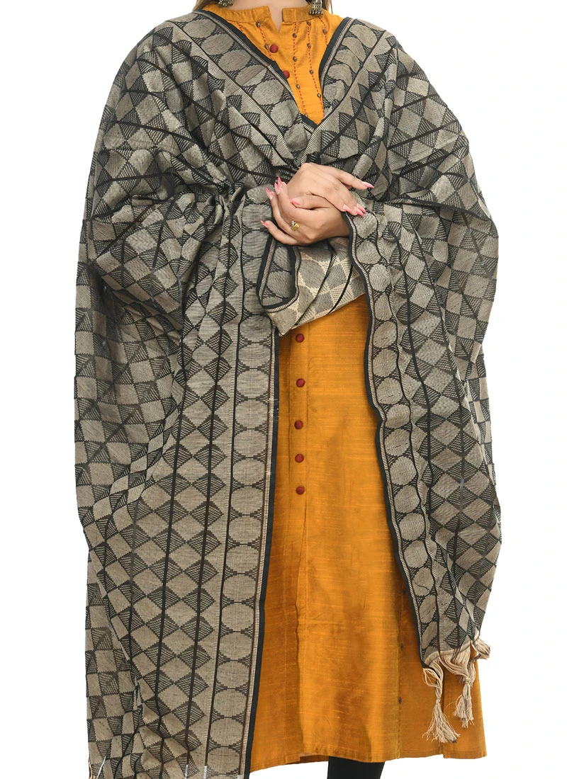 Handloom Cotton Black Weaving Work Dupatta Work Wear